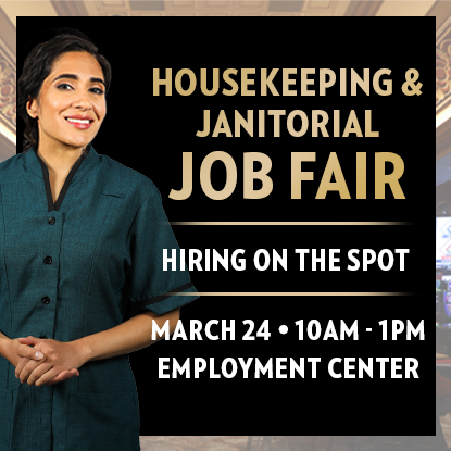 We've got job fairs scheduled at the Employment Center! Click on the Upcoming Hiring Events tab for information and to apply.