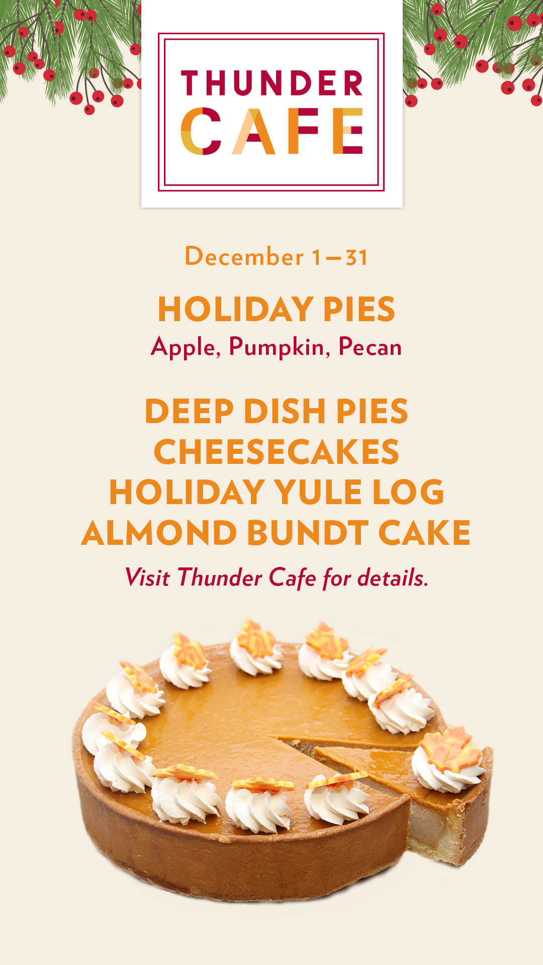 Guests must be 21 years of age or older to dine at Thunder Cafe. Guests age 20 or younger must be accompanied by an adult age 21 or older while dining in the restaurant. Thunder Cafe and the Pastry Counter are open 24/7 for the ultimate all-American diner restaurant experience!
